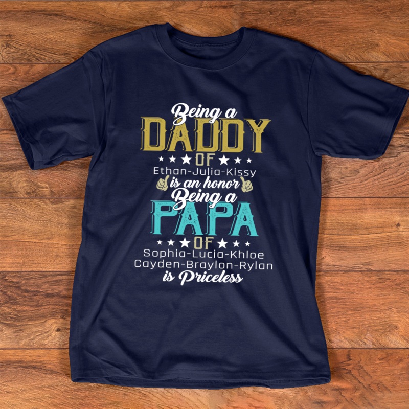 Being a Dad of kids honor Being Papa of grandkids pricelessIf you looking for a personalized t-shirt to show your love to your family, it's will be best choice.Our Classic T-Shirt serves as the perfect short-sleeved shirt for your unique, funny, or persona