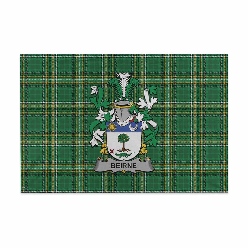 Beirne Irish Clan Tartan House Flag with Coat of Arms