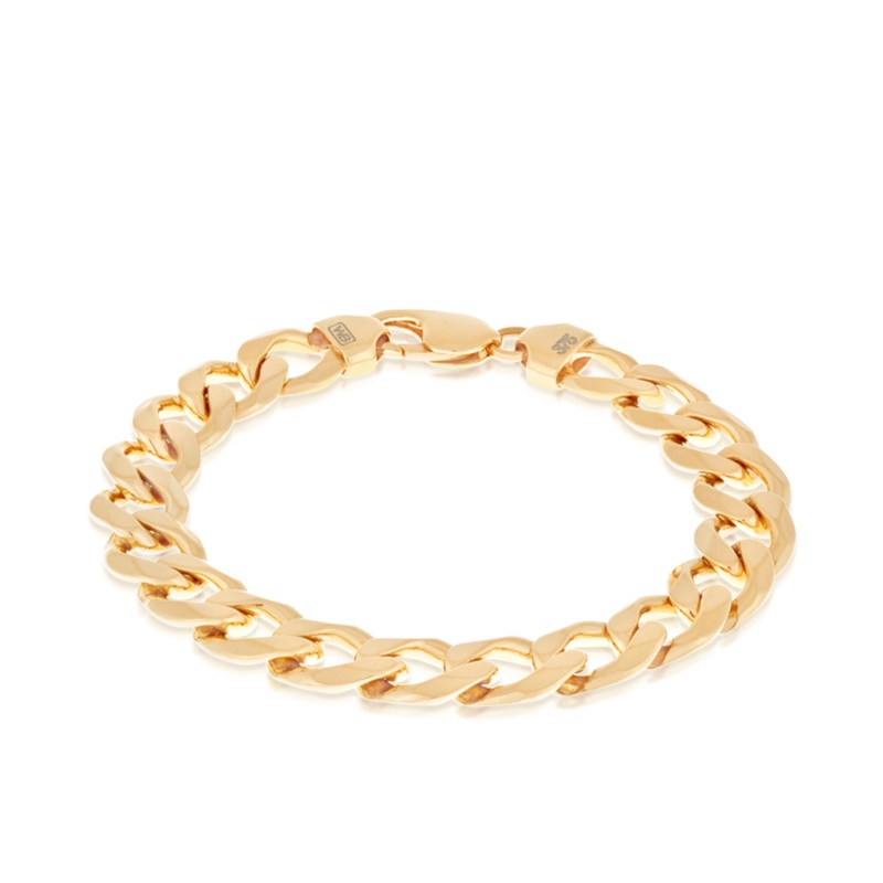 This 22cm Bevelled Curb Introducing the epitome of refined luxury the 22cm Bevelled Curb Link Bracelet in 9ct Yellow Gold. This exquisite bracelet captures the classic elegance of the curb link pattern, enhanced with bevelled edges that add a touch of contemporary charm, meticulously crafted from the radiant and luxurious 9ct yellow gold.