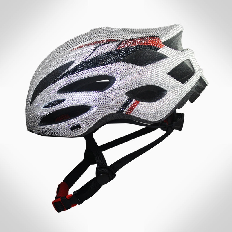Fully crystallized biker's helmetEmbellished with crystals The hardbody outer shell extends to the inside of the helmet to enhance durability without excess bulkAdjust the tightness by turning the knobLightweight, stable and comfortable, the highly adjusta