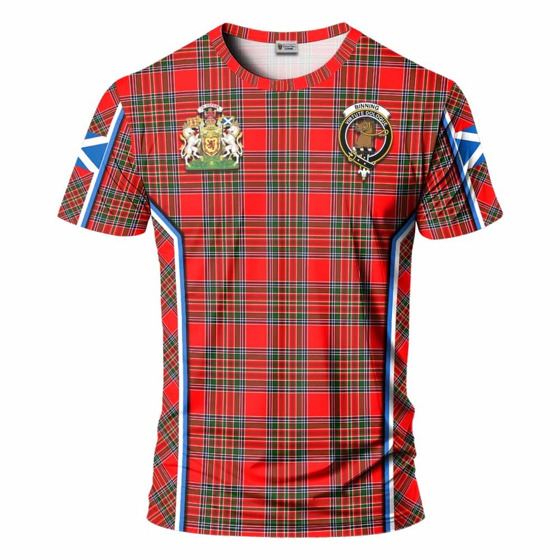 Binning Tartan Crest T-shirt Scotland Coat of Arm Flag Style