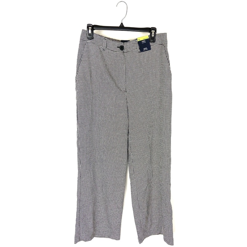 Brand new - donated from the designerM&S Collection black and white houndstooth printed dress pant with button, belt loop holes, zipper, two side pockets and one back pocket for show, wide leg bottom high rise pantEstimated Original Retail Price: $70.00Siz