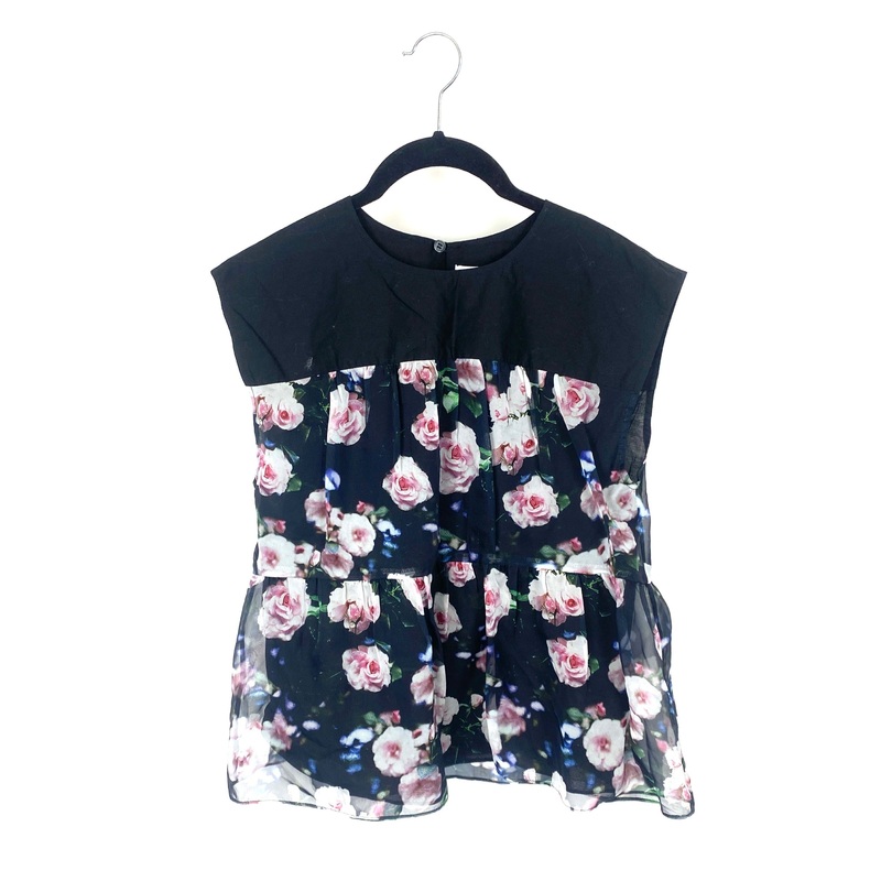 Rebecca Minkoff black sleeveless blouse with multicolor floraldesign