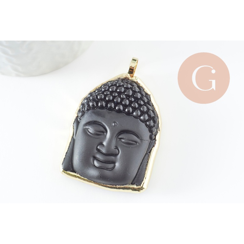 Black glass Buddha pendant in gold-plated brass, medallion creation necklace for jewelry creation, 56-59mm, x1 G5041