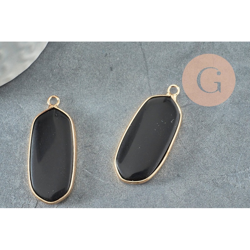 Fall for this tinted natural glass pendant to make very trendy bohemian chic jewelry. Width: 15-16mm Length 36-36mm Thickness: 4mm Hole: 2mm. Sold individually Metal: golden brass Other pendants in other colors and materials are available in the gingerlily