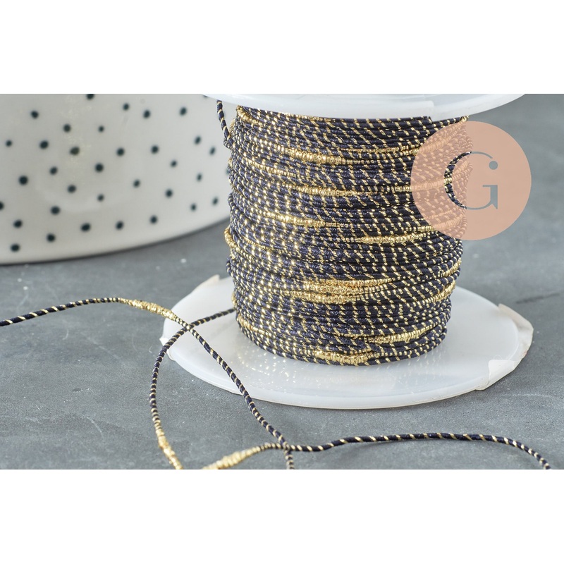 Black gold cord, jewelry making, jewelry creation, wedding ribbon, creative supply, scrapbooking, width 1.5mm, length 1 meter A magnificent black and gold nylon thread that you can use for creating jewelry, scrapbooking, creating accessories, embroidery. D