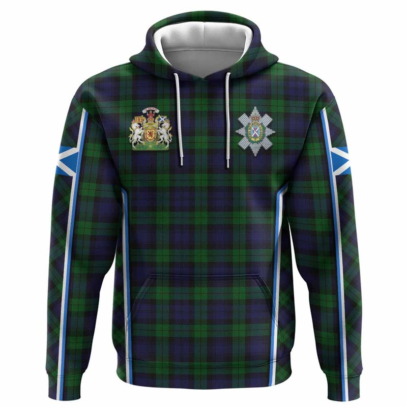 Black Watch Tartan Crest Hoodie Scotland Coat of Arm Flag Style