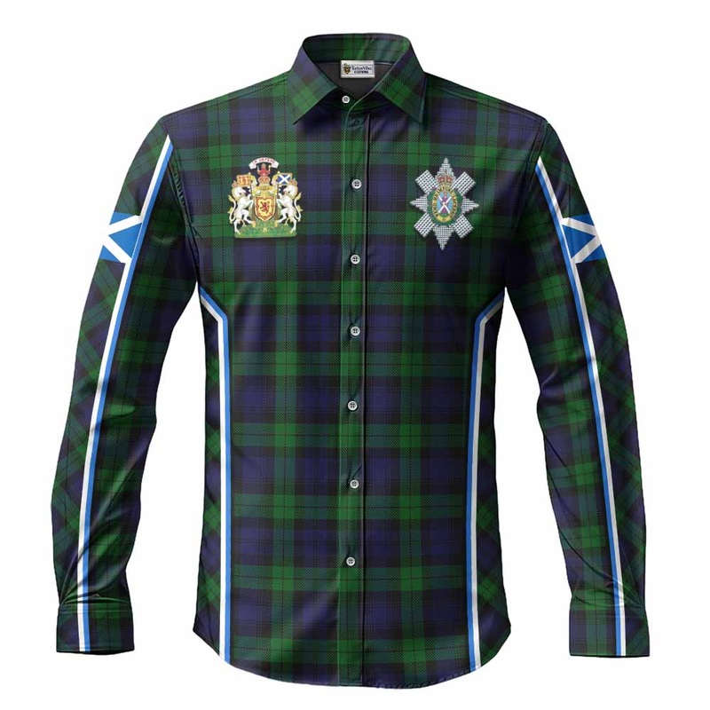 Black Watch Tartan Crest Long Sleeve Button Shirts Scotland Coat of Arm Flag Style