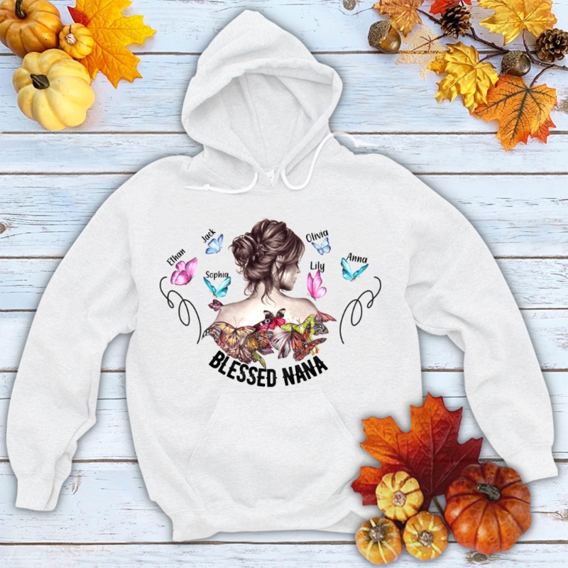 Blessed Nana Butterfly Kids ArtThis hoodie is perfect to escape the cold. It covers everything from the hips to the neck, allows the person wearing it to stay toasty at all times. Plus, with the side-front pockets, the phone and the wallet can stay warm, t