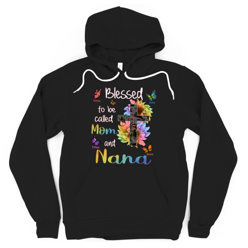 Blessed to be called Mom and Nana grandkidsThis hoodie is perfect to escape the cold. It covers everything from the hips to the neck, allows the person wearing it to stay toasty at all times. Plus, with the side-front pockets, the phone and the wallet can