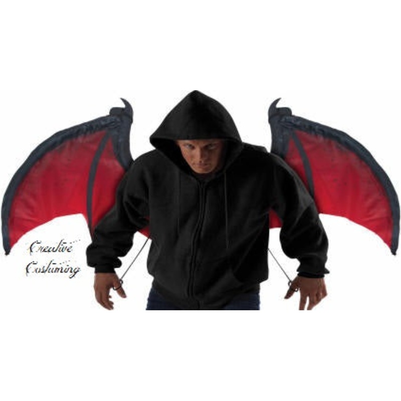 The skies are running red! The Bloodnight Wings can open and close!Worn like a backpack with elastic shoulder straps, each wing has a corresponding string that canbe manually pulled down for movement.The wing set has a 4 foot span.Set folds in half vertica
