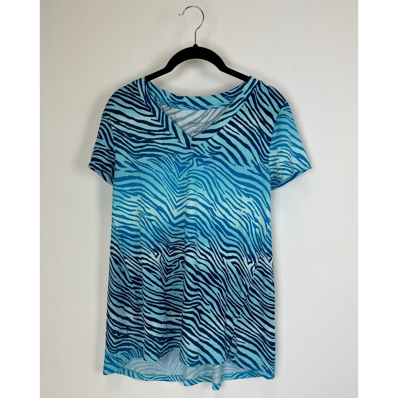 Brand new - donated from the designerComfort Code by Cuddl Duds blue animal print short sleeves top, with v-necklineSmall Size(6/8)95% Polyester & 5% SpandexEstimated Original Retail Price: $42*This is a sample donated from the designer to support The Fash