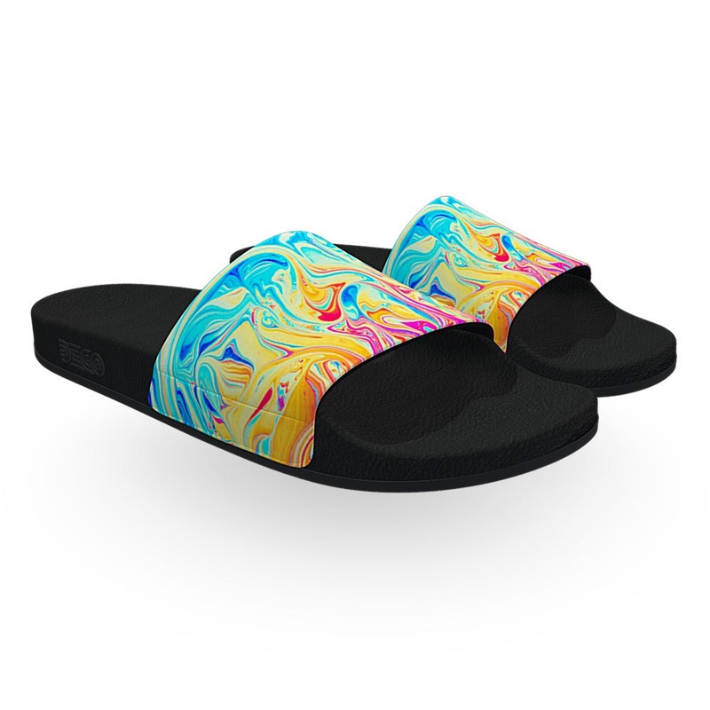 Blue Yellow and Pink Soap Bubble Slide Sandals