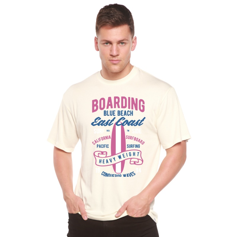 Boarding Blue Beach Men’s Bamboo Viscose/Organic Cotton Short Sleeve Graphic T-Shirt Medium Black