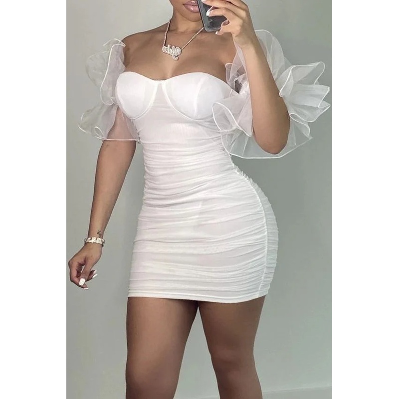 Bodycon Homecoming Dresses White Ruffle Sleeves Mini Party Gown J7111