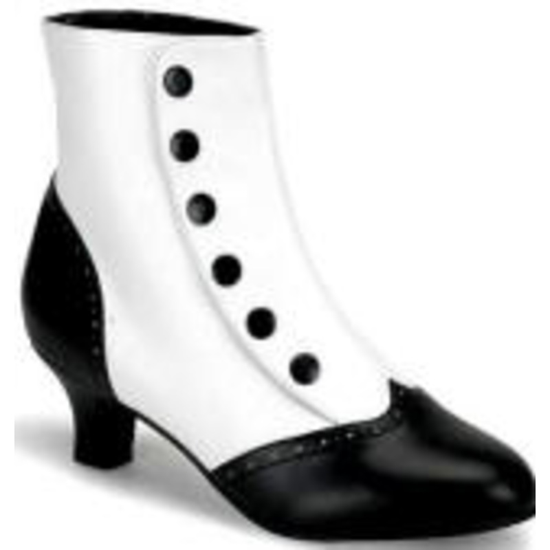 Great for Lady Gangsters or VictorianThis shoe has a 2" heel.Color: White/Black-WB/PU,Red/Black-RB/PUSize: 6, 7, 8, 9, 10, 11, 12PLFlora1023
