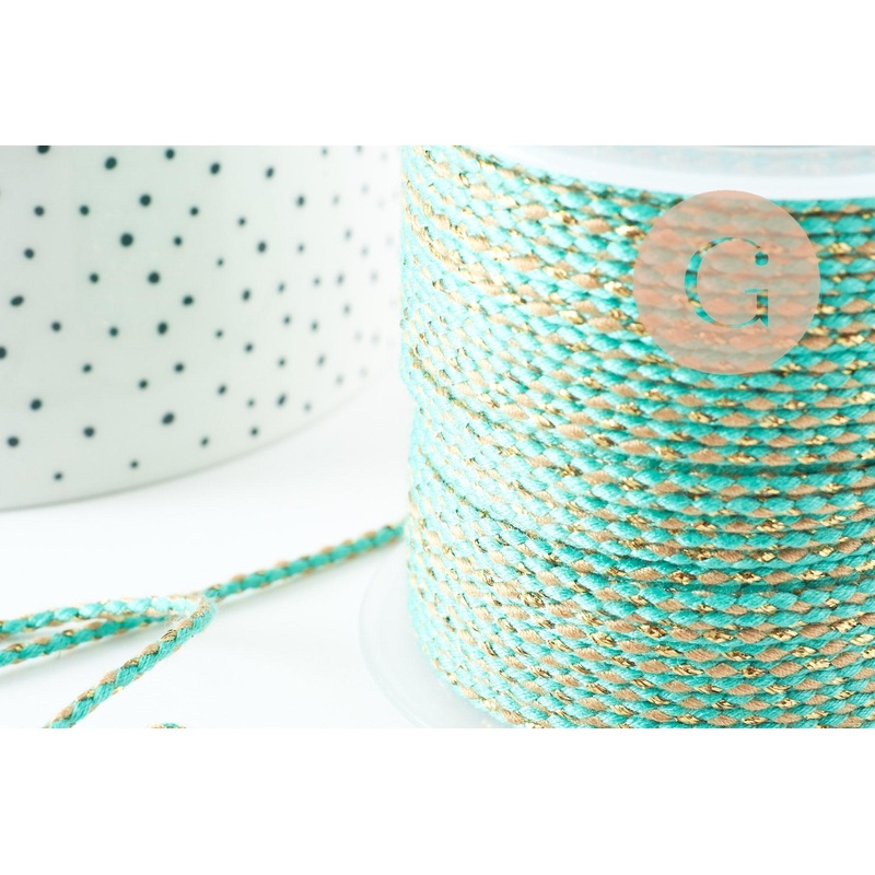 Braided cord Green Yellow turquoise gold 1.5mm x1 meter G9731