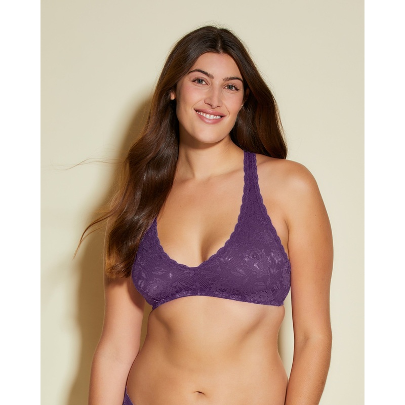 Bralette in pizzo senza ferretto con spalline incrociate, creata per chi ha il seno abbondante ed il torace pizzolo.Soffice ed elastico pizzo smerlato floreale Never Say Never semi-trasparente.Coppe non imbottite, foderate con tulle rinforzato per maggiore