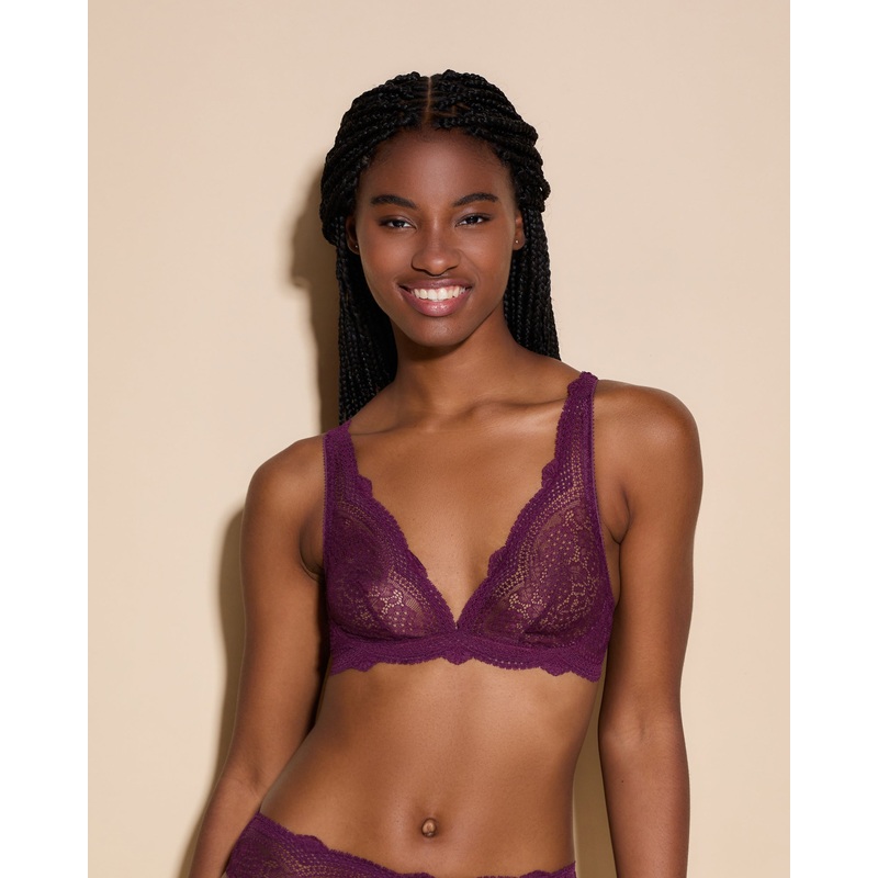 Bgellose Bralette mit filigraner, floraler Spitze.Hohe, dreieckige, nicht gepolsterte und ungeftterte Krbchen mit tiefem Ausschnitt.Haken- und senverschluss auf der Rckseite.Verstellbare Trger.Handwsche in kaltem Wasser, nicht im Trockner trocknen.80% poly