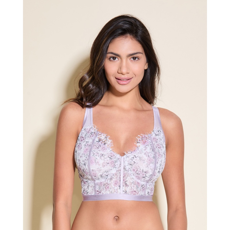 Bralette a corpetto senza ferretto in stampa floreale, creata per chi ha la corporatura minuta ed il seno abbondanteDettagliato pizzo cigliato smerlato con morbido tulle di microfibra.Coppe non imbottite senza ferretto, foderate con tulle rinforzato per ma