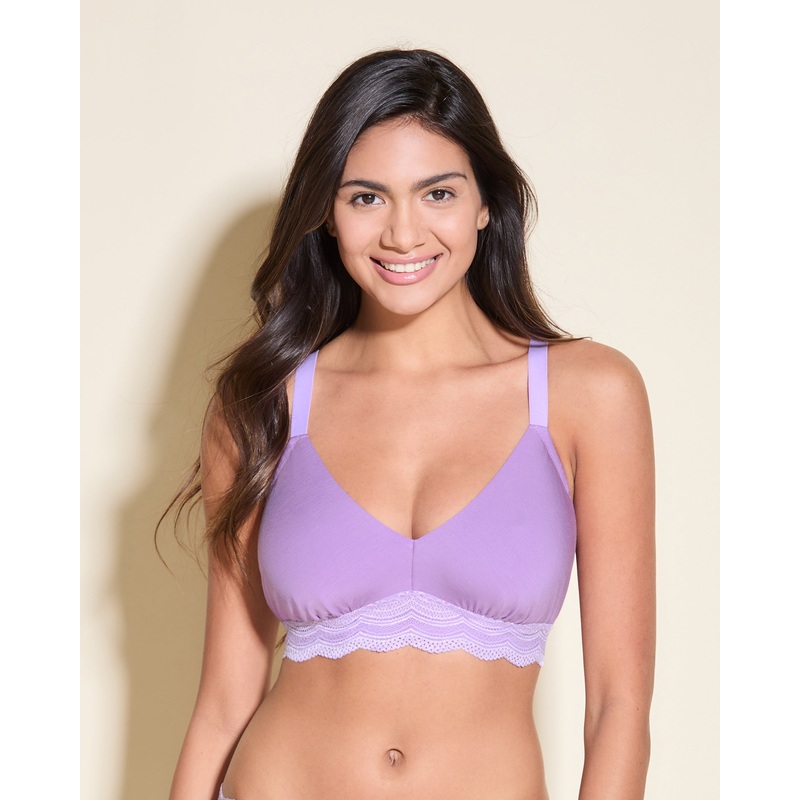 • Bralette sin aros diseado para copas a partir de la E con una banda bajo el pecho ms estrecha, el encaje de Ceylon y modal.