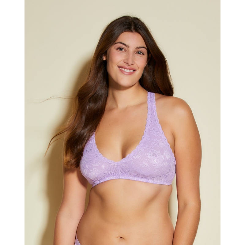 Bralette de espalda cruzada sin aros diseado con copas grandes y una banda ms extensa bajo el pecho.El encaje festoneado suave, flexible y semitransparente de flores Never Say Never.Copas sin relleno forradas con una malla de refuerzo para aumentar la suje