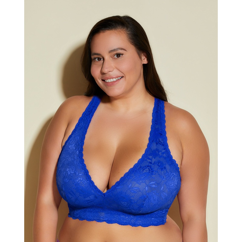 Bralette de espalda cruzada diseado con copas extragrandes y una banda ms pequea.Encaje festoneado suave, elstico y opaco forrado con una malla de refuerzo que aumenta la sujecin.Escote en V y copas sin relleno.Sin cierres.Tirantes de encaje cruzados en la