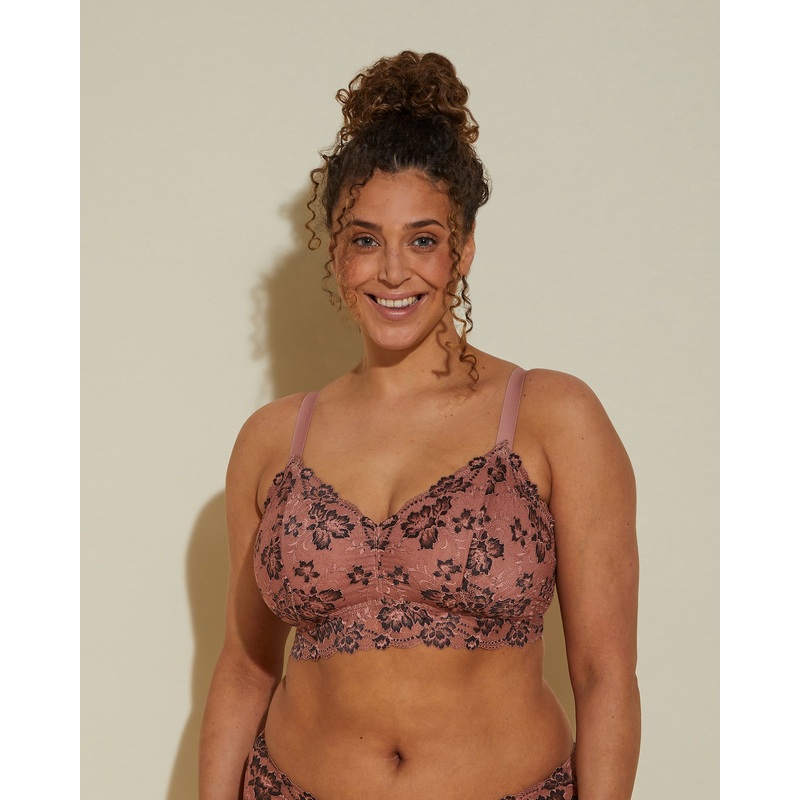 Bralette de estilo top sin aros con un diseo especial para tallas Extended.Encaje floral detallado en dos tonos.Tirantes anchos y ajustables que resultan cmodos durante todo el da.Sujecin reforzada con un forro de malla y una banda ancha bajo el pecho.Cier