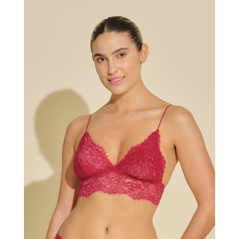 Triangle shaped cups bralette adorned with delicate floral eyelash lace made in Italy exclusively for Cosabella.Delicate lace at band beneath the bust adds a touch of romance.Adjustable straps crafted for a custom fit.Pullover style for effortless chic eve