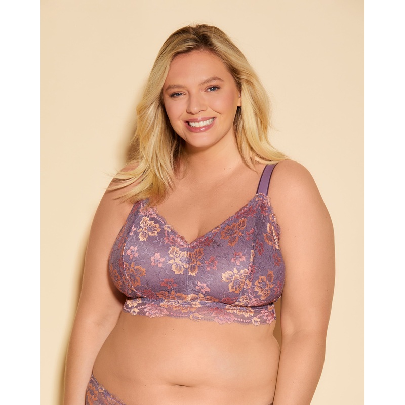 Brassire longue en dentelle sans fil conue pour les personnes avec des montures plus petites et des bonnets les plus pleins (bonnets US I-J/K/L).Dentelle florale tricolore vive et trs brillante.Bonnets non rembourrs et sans fil doubls d'une doublure en mai