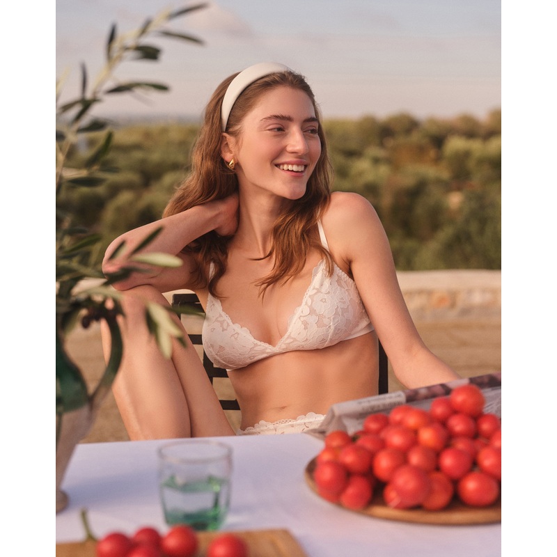 • Bralette sin aros triangular con un encaje lujoso y duradero a lo largo de toda la prenda.