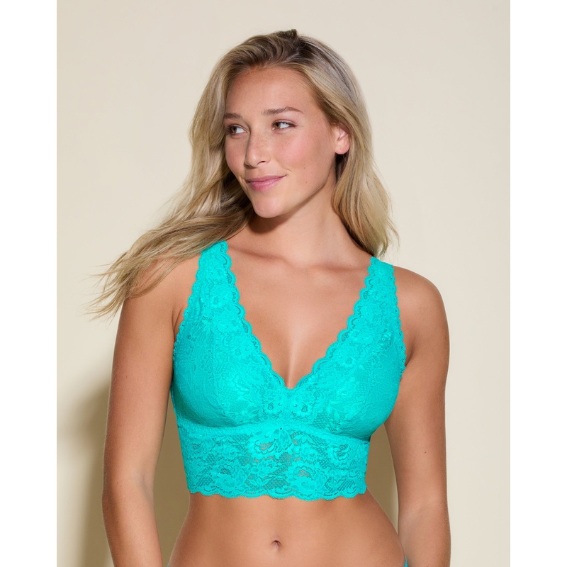 Bralette de estilo top sin aros.Banda amplia bajo el pecho que ofrece ms sujecin y se adapta mejor al cuerpo.Escote profundo en forma de V y copas sin relleno.Bralette sin cierre y con tirantes ajustables.Encaje festoneado suave, flexible, sin transparenci