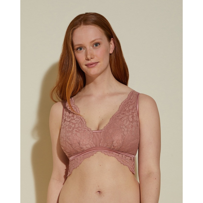 Bralette sans couture spcialement conue pour les bonnets pleins avec des bandes plus petites.Dentelle festonne semi-transparente avec bande de satin.Doubl d'un support en powermesh.Larges bretelles rglables avec fermeture au dos par crochets et illets.Lava