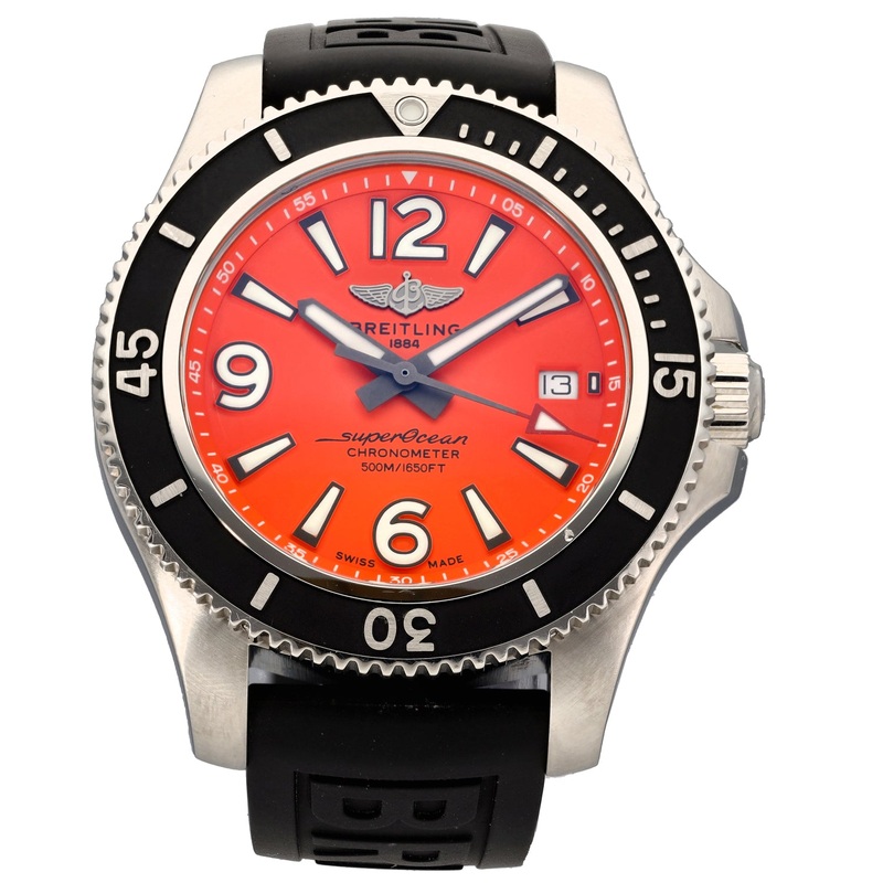 TheBreitling Superoceanis an intricate timepiece which was launched byBreitlingbackin the1957,being a perfect addition to any watch collection. This pre-owned example is finished with an orangedial inside a 42mm stainless steel case, which is fitted on an
