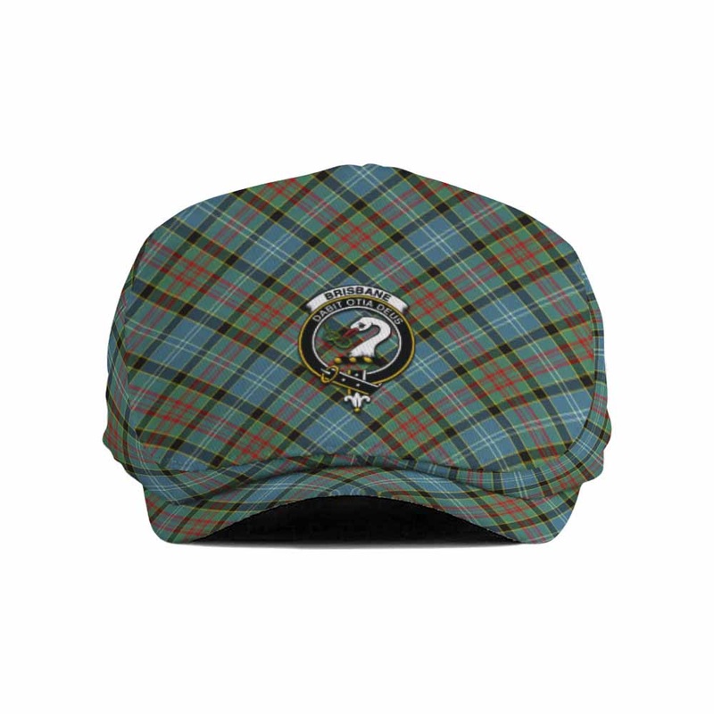 Brisbane Tartan Flat Cap, Jeff Cap Cross Style with Family Crest