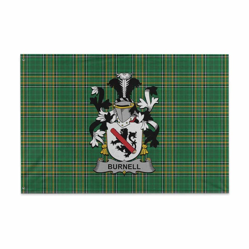 Burnell Irish Clan Tartan House Flag with Coat of Arms