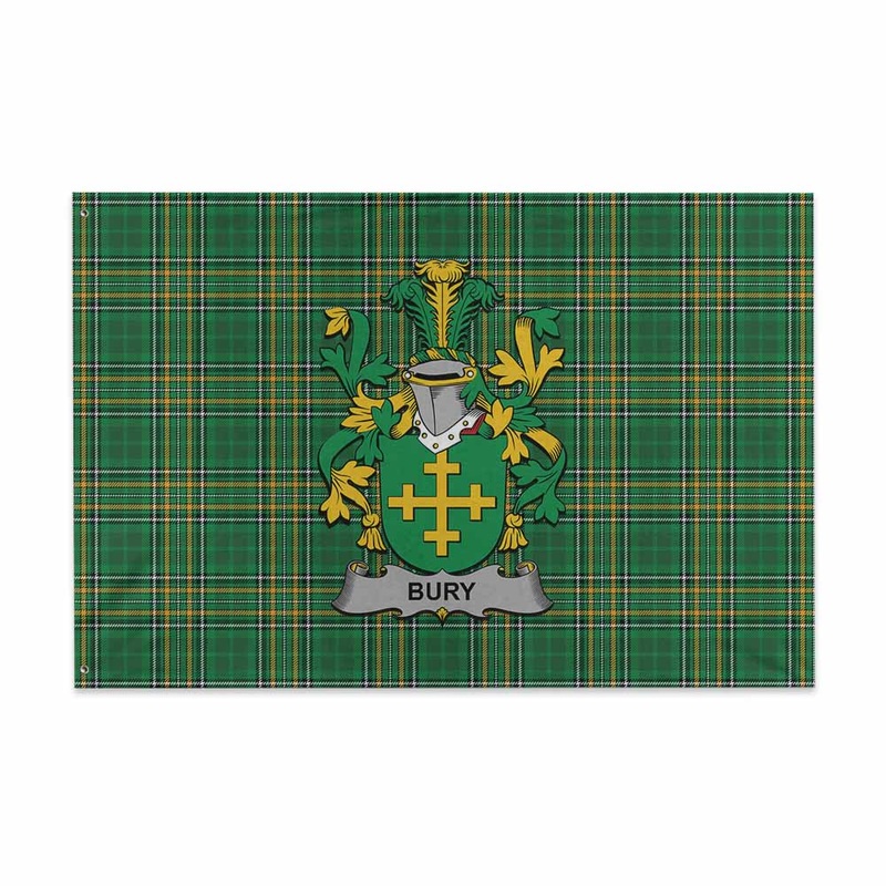 Bury Irish Clan Tartan House Flag with Coat of Arms