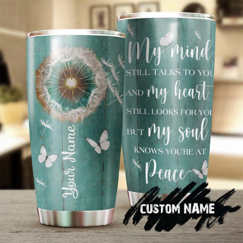 Butterfly Dandelion Memorial My Mind Still Talks To You Personalized Tumbler-Unique Gift-Memorial Gift for Butterfly Lover For HerGift of Love: A meaningful gift for your friends, family members, wife/husband, bridesmaid/groomsmen, coworkers on birthdays,