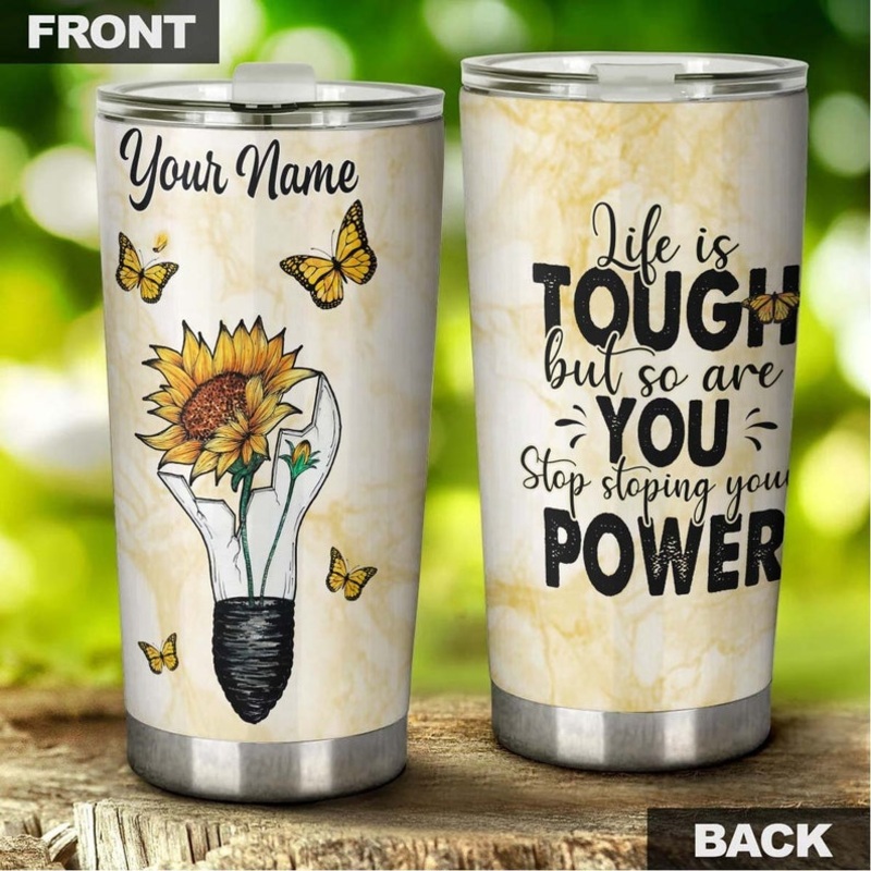 Butterfly Sunflower Bulb Power Life Is Tough So Are You Personalized Tumbler-Birthday gift Christmas Gift for Butterfly Lover For Her