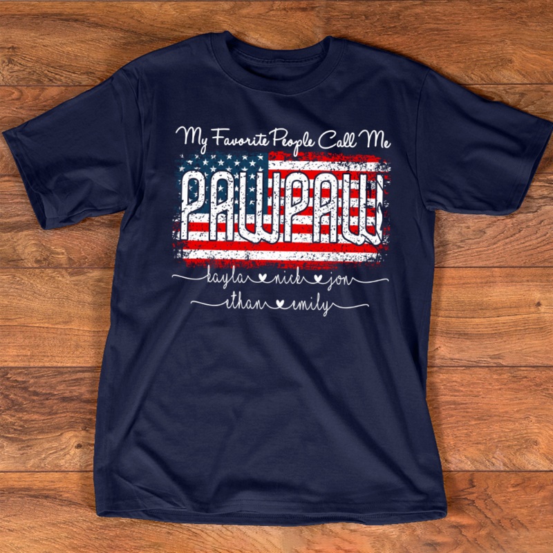 Call me Pawpaw Kids FlagGreat as Birthday gifts or Holiday presents. This adorable item can be designed upon anyone's wish with any title.Please enter:1. Nickname: Papa, Grandpa, Pawpaw, Pop-Pop, Papaw ...etc.2. Kids' Names wanted on the shirt (Names separ