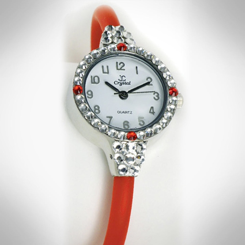 - Simple elegant watch featuring sparkling crystals accents on both the bezel & bangle