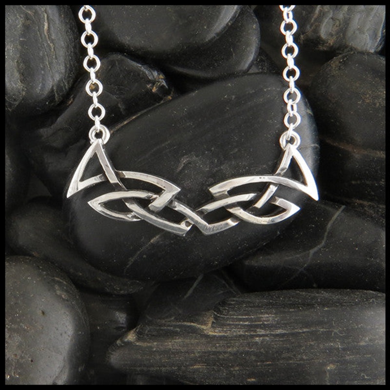 Unique Open Knot Celtic bar necklace crafted in Glasgow, Scotland by Russel Caldwell of Mithril Jewelry. Comes with an attached 16" chain- as pictured.Item Number: C21Original designs Russel CaldwellPlease call or email for more information800.488.6347orse