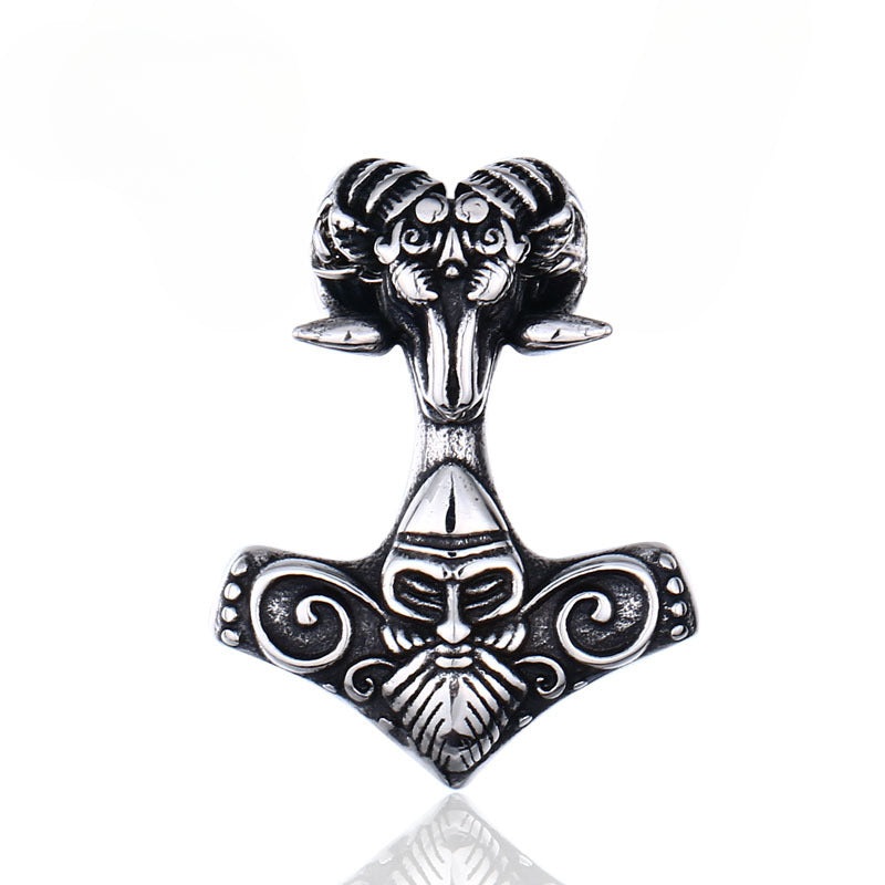 Celtic Knot Viking Pendant with Sheep Head Design in Titanium Steel for Men