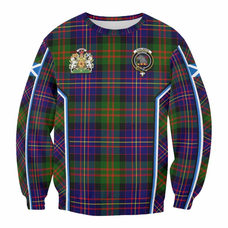 Chalmers Tartan Crest Sweatshirt Scotland Coat of Arm Flag Style