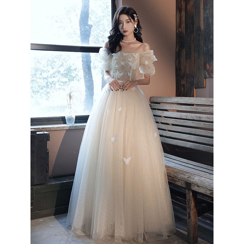 Champagne Fairy Princess Dress Sweet 16 Birthday Party Dress Butterfly Printed 164