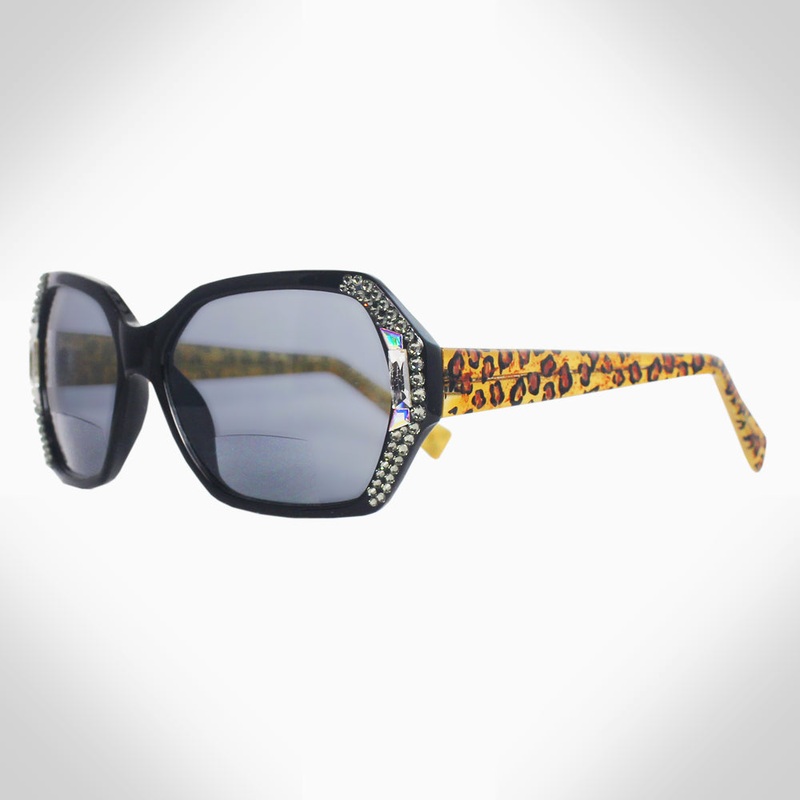 Sunglasseswith bifocal lensesInjection frameUse the most impact-resistant material available for the lens to offer maximum eye protectionEmbellished with crystals, which are set by Jimmy Crystal's expert craftsmanship. This product provides unparalleled ae