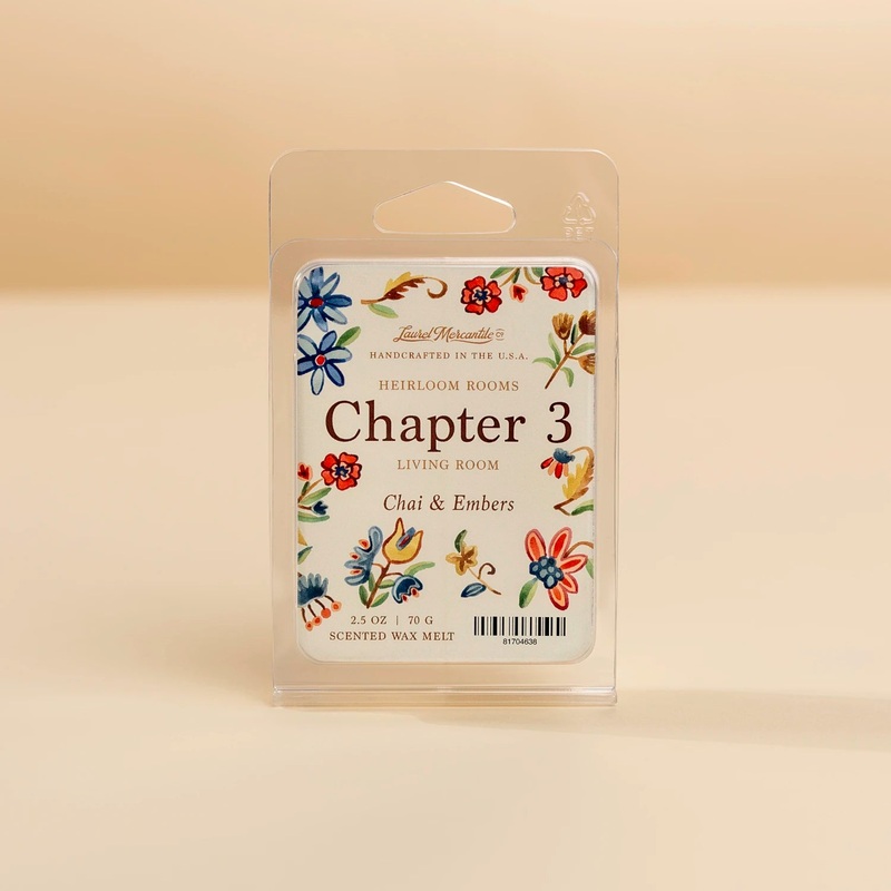 Made in Laurel, MississippiChai & EmbersWax MeltA collection of scents inspired by each chapter of Erin's bookHeirloom Rooms: Soulful Stories of Home."A living room ought to be where we do our living, unselfconsciously. In pants with elastic waistbands, sn