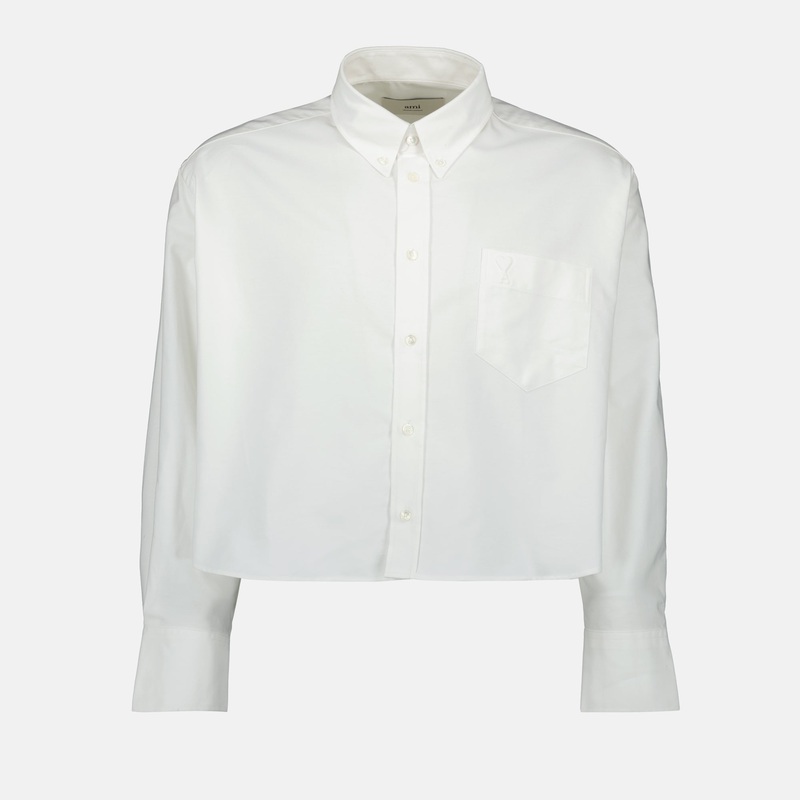 Chemise Ami de coeur oversize blanche de AMI Paris, ralise en coton, est un modle mixte de la collection Printemps-t 2025. Elle prsente un col revers, des manches longues et une coupe oversize.