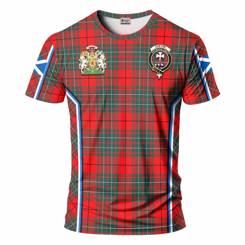 Cheyne Tartan Crest T-shirt Scotland Coat of Arm Flag Style