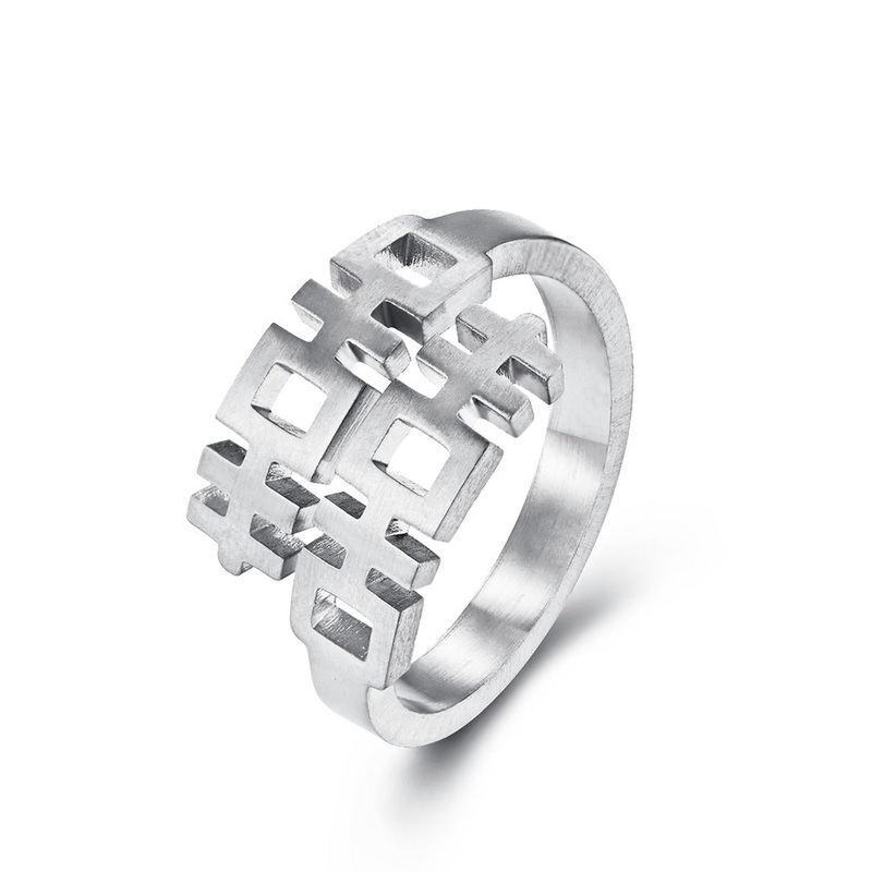 Elevate your jewelry collection with the Chinese style double happiness hipster ring, national style Xi character hip-hop literary and artistic hipster men titanium steel jewelry ring JZ409 for men. This ring is more than just an accessory; its a statement piece that reflects your unique personality and appreciation for cultural artistry.